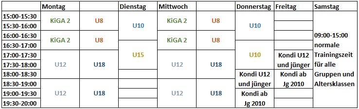 Gruppeneinteilung feste Gruppen zu den veröffentlichten Trainingszeiten Mo-Do feste Gruppen zu den veröffentlichten Trainingszeiten Mo-Do